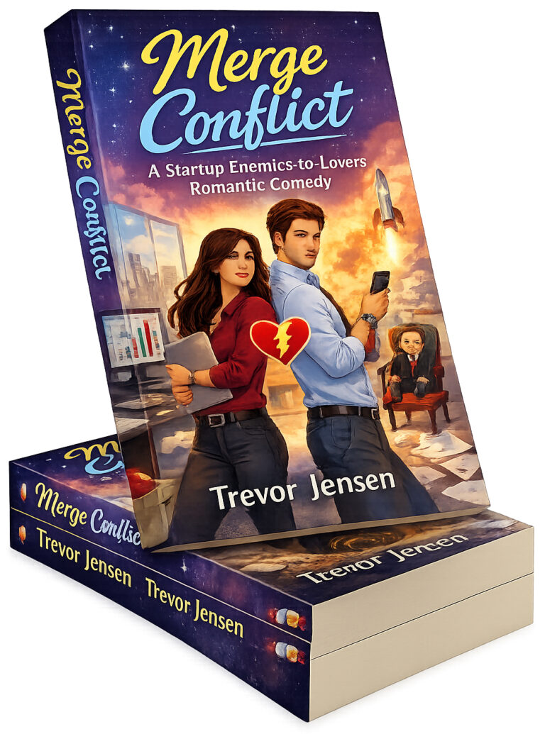 Merge Conflict is a fast, funny, enemies-to-lovers romantic comedy with workplace banter, forced proximity, startup chaos, medium heat, and a happily-ever-after you’ll want to commit to.